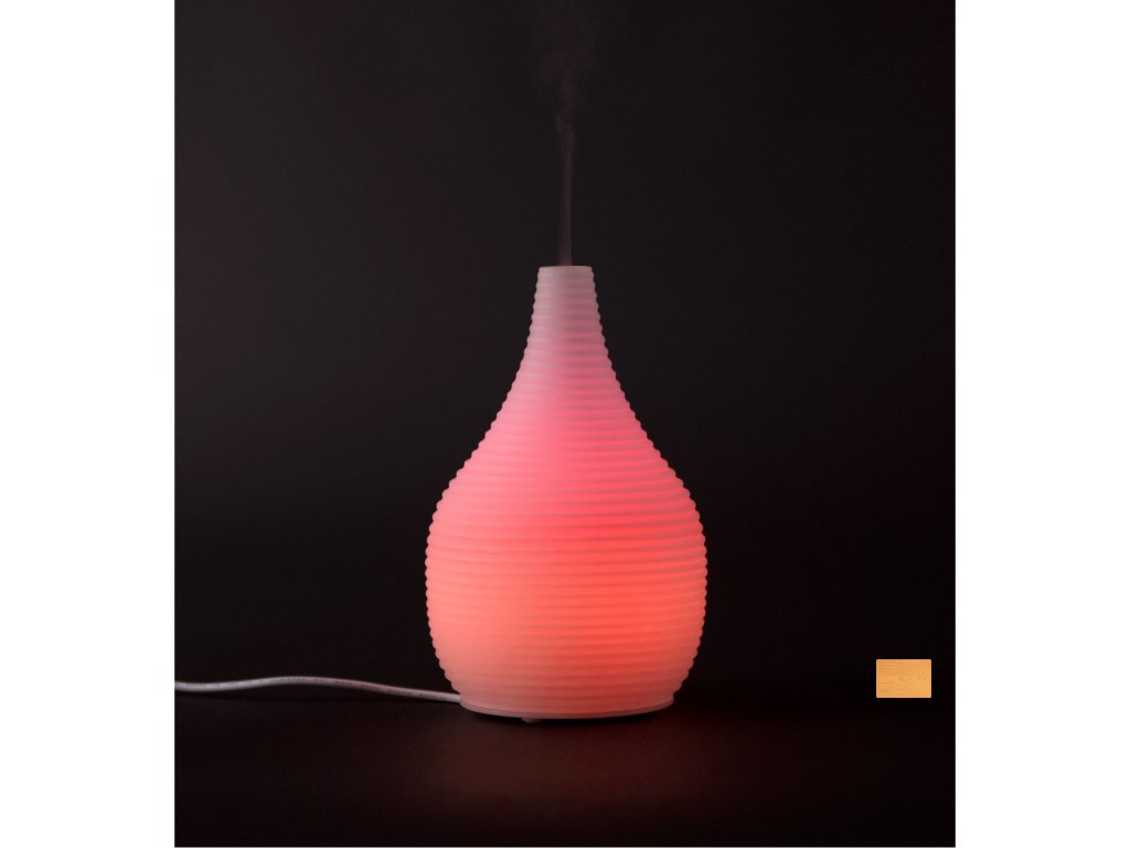 Zvlhčovač vzduchu s difuzérem vyrobený z mléčného skla. Aromatizuje a zvlhčuje vzduch kombinací účinků vodní mlhy a esenciálních olejů. Pomocí jemného ultrasonického vlnění rozkládá esenciální oleje na extrémně malé mikročástice, aniž by je zahříval. Oleje si tak zachovávají původní vůni i léčivé účinky. Aroma difuzér vám pomůže vytvořit z každého pokoje vonící oázu a navodit relaxační atmosféru. Bez přidání esenciálního oleje vám aroma difuzér poslouží jako zvlhčovač vzduchu. Přidáním konkrétního esenciálního oleje můžete sobě, nebo vašim blízkým pomoci s různými obtížemi. Postačí pár kapek kvalitního oleje a můžete ulevit rýmě, kašli, bolestem hlavy, nebo špatnému usínání. Správně zvolený olej vyčistí vzduch, nebo vám jednoduše zpříjemní pobyt v místnosti, ve které se právě nacházíte. Díky neutrálnímu designu z mléčného skla stylově doplní vybavení všech obytných prostor, dětských pokojů, jednacích místností, masážních salónů, wellness center apod. Vhodně zvolenými esenciálními oleji můžete podpořit relaxační atmosféru v ložnici, dezinfekci vzduchu či klidný spánek v dětském pokoji. Koncentraci v pokoji studenta anebo uvolněnou komunikaci, ať už doma nebo v pracovním prostředí. Používejte vždy kvalitní oleje. Použitím levných, umělých olejů sice vytvoříte voňavé prostředí, ale tělo a mysl si neodpočinou. Citlivým osobám může naopak uškodit. Například bolestí hlavy apod. Během provozu aroma difuzéru lze libovolně a jednoduše nastavit světelné efekty, které vytvoří ve vašem pokoji velmi příjemné prostředí a navodí relaxační atmosféru. Aroma difuzér je vhodný všude, kde je z bezpečnostních důvodů nemožné použít otevřený oheň (svíčky v aroma lampách). Kombinuje účinky vodní mlhy a esenciálních olejů. Obsluha aroma difuzéru je velmi jednoduchá. Do zásobníku nalejete vodu, nejlépe destilovanou. Nakapete několik kapek esenciálního oleje a přístroj zapnete stiskem tlačítka. Aroma difuzér začne okamžitě vytvářet vodní mlhu a rozptylovat olej do vzduchu. Dalšími stisky můžete nastavit různé barvy v intenzivnější nebo světlejší verzi, které zůstanou nastaveny během provozu přístroje, dokud je nezměníte. Barevné světlo procházející mléčným sklem vytváří příjemný světelný efekt. Nemusíte kontrolovat množství vody v zásobníku. Po vyprázdnění se aroma difuzér sám vypne.