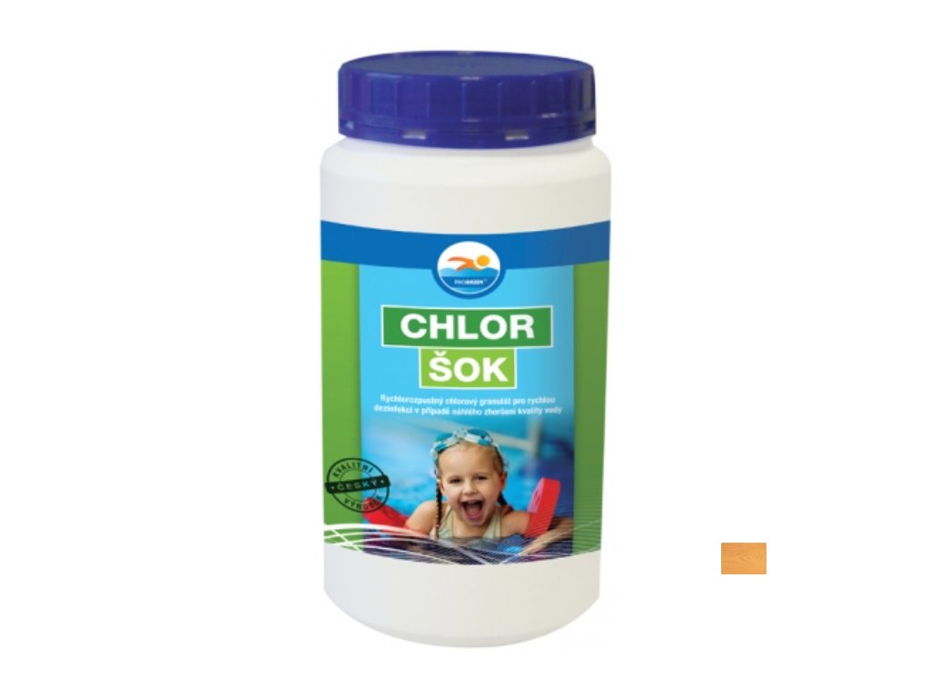Granulát k rychlé dezinfekci s možností koupání již po krátké době. Obsahuje 67 % aktivní chlor. Při prvním a dalším šokovém dávkování, které by se mělo provádět pravidelně každé 2 - 3 týdny se dávkuje 90 g / 10 m3. Přípravek se pomalu sype do skimmeru při zapnuté cirkulaci vody. Balení: 1,2 kg.
