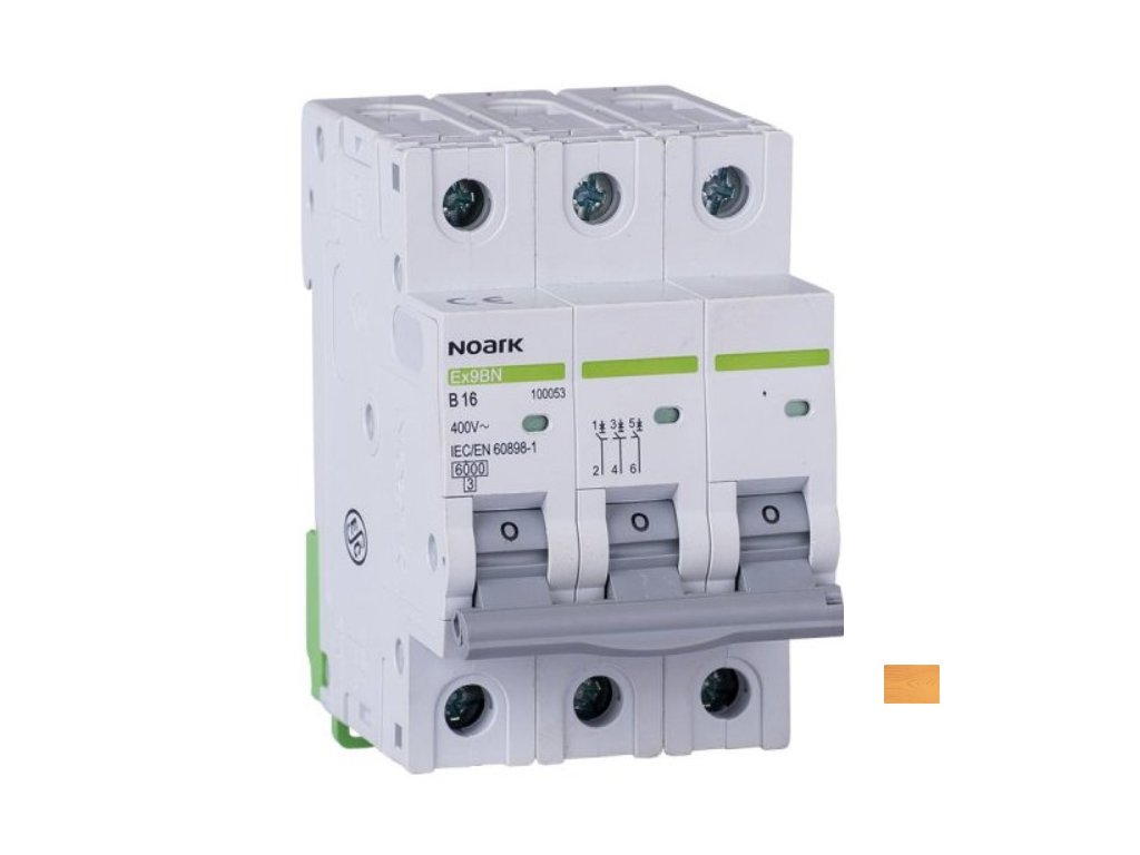 Třífázový jistič Noark 3P B16 na DIN lištu je třípólový jistič s charakteristikou zátěže B a maximálním proudem 16 A. Jistič slouží k ochraně elektrických obvodů proti přetížení a zkratu.
