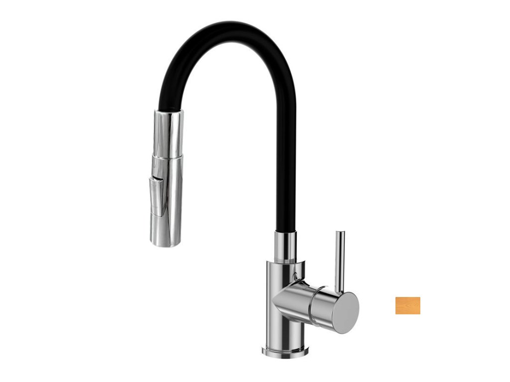 Dřezová stojánková vodovodní baterie s flexibilním (tvarovatelným) výtokovým ramínkem nabízí možnost "natvarovat" výtokové ramínko do co nejúčelnější polohy. Velmi praktickým konstrukčním vylepšením ramínka je dvoupolohová sprcha umístěná na jeho konci. Ramínko baterie je plně otočné (360°) |