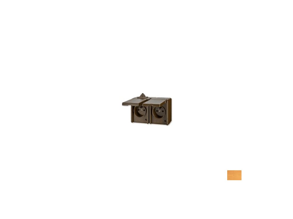 Venkovní dvojzásuvka vodotěsná ABB PRAKTIK 5518-2029 H hnědé barvy s montáží na zeď a krytím IP 44 pro venkovní použití.