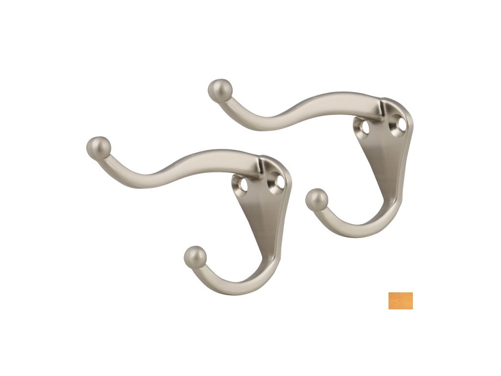 Sada 2 háků na oblečení 34g. Povrch je broušený nikl. Vybaveno 4 samořeznými šrouby.