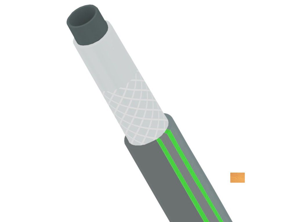 Čtyřplášťová profi PVC hadice vyztužená PES vláknem. Neprůhledná vnitřní vrstva zabraňuje tvorbě řas. Technické údaje: -vnitřní průměr 19 mm, 24,5 mm vnější průměr -váha: 256 g/m -tlak při 20°C: pracovní 8 bar, poruchový 18 bar -materiál: PVC