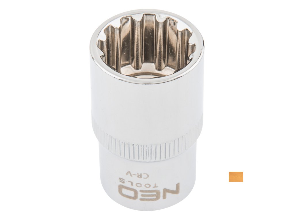 Nástrčná hlavice Spline 1/2" NEO vyrobený z odolné chrom-vanadiové oceli dle normy DIN 3124. Kulovitý tvar hlavice poskytuje široké možnosti použití, včetně uvolňování šroubů Torx, Spline, dvanáctihranných, metrických, v palcích a čtyřhranných. Kvalitu nářadí potvrzuje certifikát TÜV a záruka výrobce na 25 let. Značka NEO splňuje očekávání profesionálů.