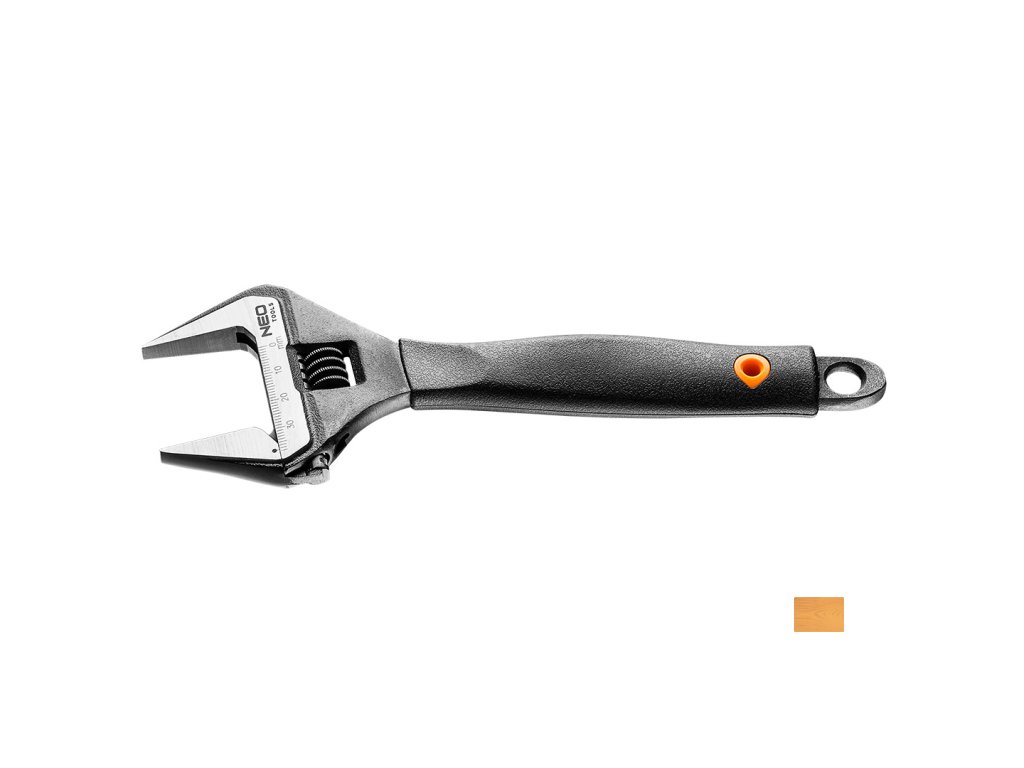 Nastavitelný klíč NEO kovaný z odolné chrom-vanadiové oceli. Vyznačuje se velmi širokým rozsahem regulace čelistí. Rozestup čelistí je o 40% větší než v případě standardních klíčů. Rozšířená a zúžená hlava umožňuje práci v těžko přístupných místech. Ergonomická rukojeť potažena vrstvou protiskluzové hmoty TPR odolné vůči působení olejů a maziv. Kvalitu nářadí potvrzuje certifikát TÜV a záruka výrobce na 25 let. Značka NEO splňuje očekávání profesionálů.