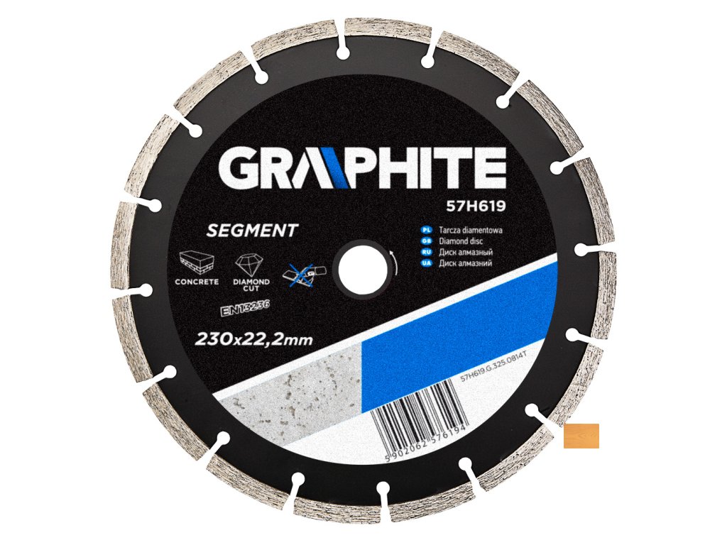 Diamantový segmentový kotouč GRAPHITE je díky segmentům lisovaným za horka vhodný k vykonávání těžkých stavebních prací. Vysoce odolné diamantové segmenty umožňují účinné řezání prvků z betonu, železobetonu, žuly, mramoru, kamene, cihly, atd.
