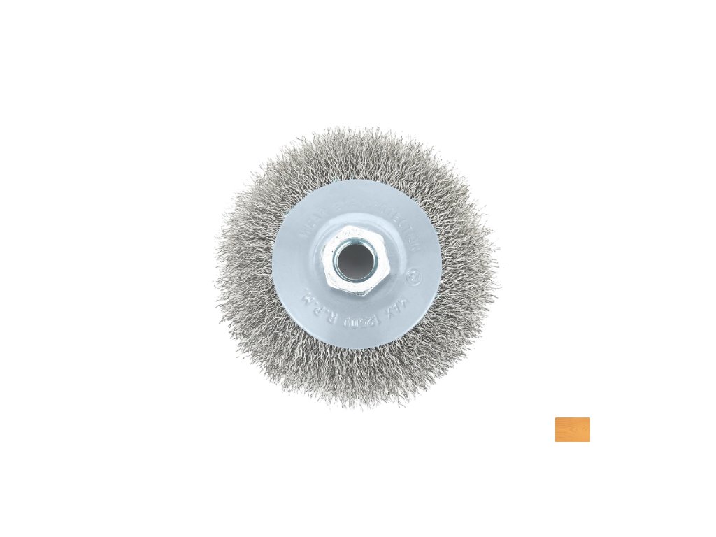 Drátěný kartáč 100 mm, krimpovaný drát, ocel, M14, max. otáčky: 12500 ot/min, EN 1083-2