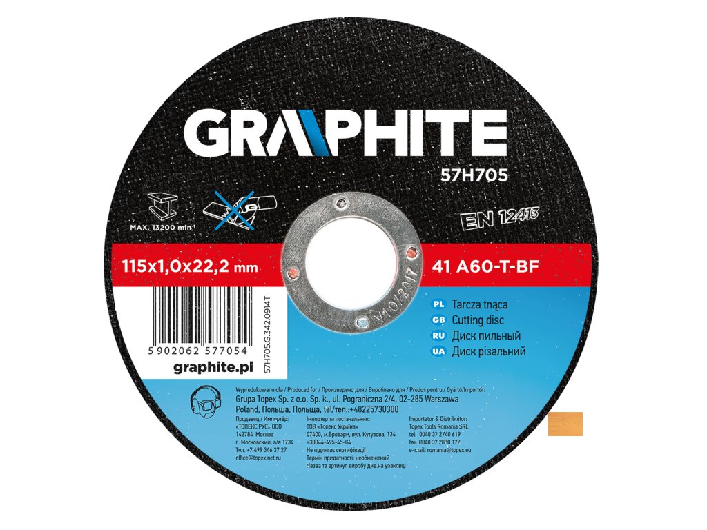 Kotouč na řezání kovů GRAPHITE díky pokročilé konstrukci a zredukované tloušťce umožňuje výrazně zkrátit čas řezání. Zajišťuje vysokou úroveň bezpečnosti při práci, zejména díky souladu výrobku s normou EN12413.