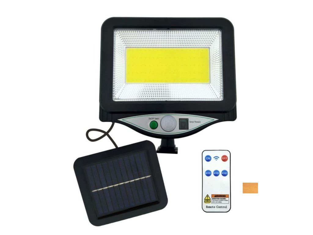 Obsah balení: 1 ks LED solární reflektor, 1 ks solární panel, 1 ks dálkový ovladač, 2 ks podložka pro připevnění, 8 šroubků, 8 hmoždinek