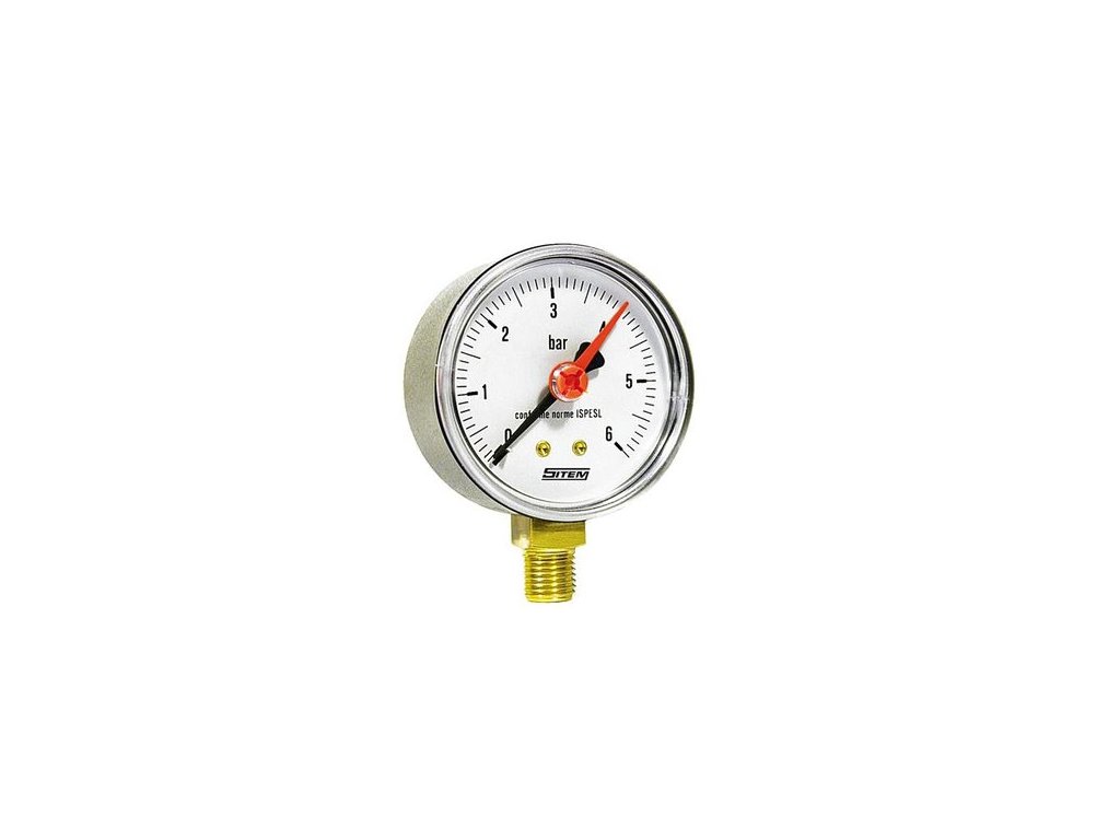 - manometr se spodním vývodem 1/4", průměrem budíku 50mm a měřícími rozsahy 0-6 (0-10) BAR.