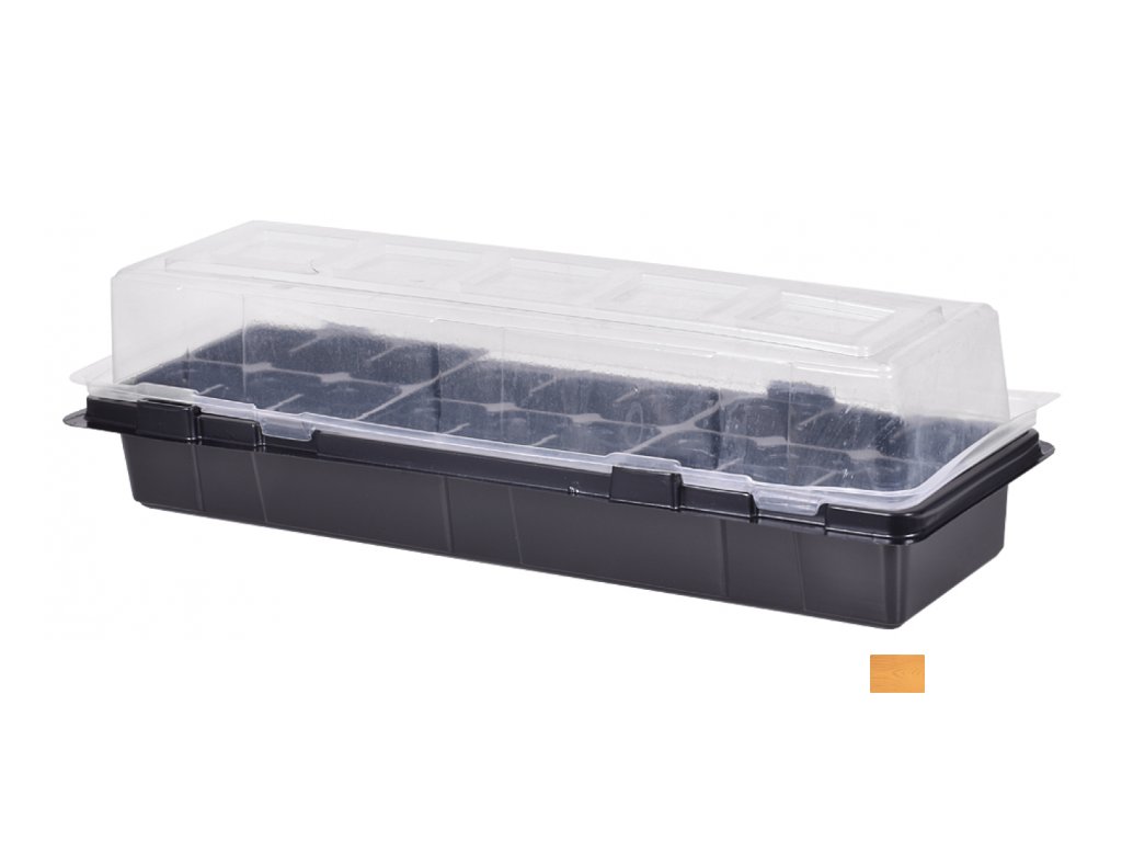 Minipařeniště je vhodné pro výsev, předpěstování sadby nebo řízkování rostlin. Po výsevu či výsadbě rostlin květníky umístíme na světlé a teplé místo. Substrát, zejména v počátečním stádiu pěstování, udržujeme stále vlhký a zamezíme vysychání nebo přemokření. Později zabezpečíme pravidelnou ventilaci vzduchu, aby nedocházelo k napadení rostlin chorobami a sadba byla otužilá. Složení: 2 x 18 ks květníků 5 x 6 cm, 2x miska, 2x víko. Rozměr: 47 x 16 x 12 cm.