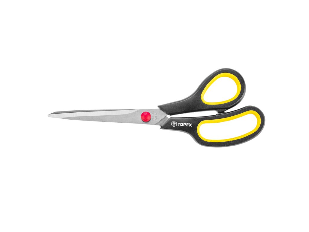 Nůžky TOPEX velmi užitečné při renovačních pracích a domácím kutilství. Ostří vyrobeno z vysoce kvalitní kalené nerezové oceli, což zaručuje dlouhou životnost nářadí. Nůžky díky pogumovaným rukojetím dobře sedí v ruce a nekloužou v ní, což zvyšuje komfort při práci. Značka TOPEX je určena pro domácí kutily.