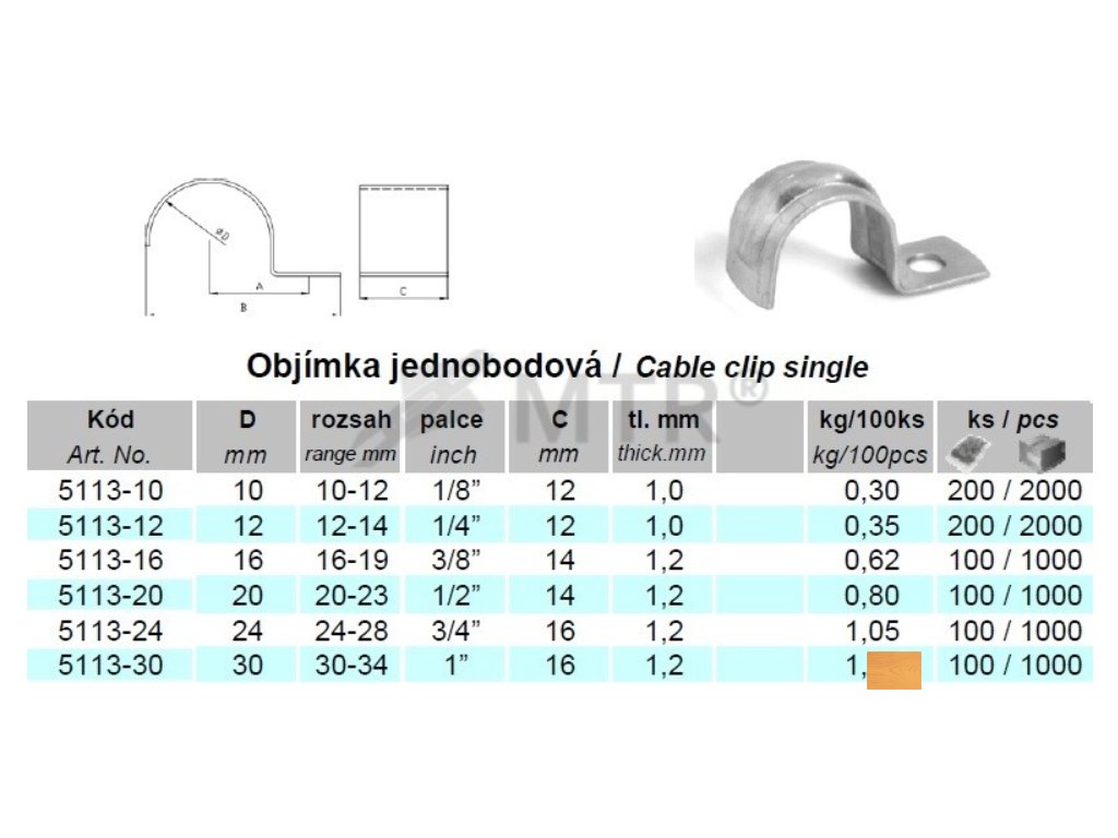 Objímka jednobodová je k dispozici v 6-ti velikostech v rozměrové řadě 10-12mm 1/8" - 30mm 1", objímka je galvanicky pozinkovaná.