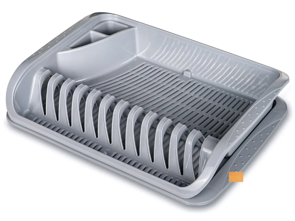 Odkapávač na nádobí 39,5 x 29,5 cm, s podnosem, PH ŠE.rozměry: 39,5 x 29,5 x 8 cmmateriál: plastbarva: šedáOdkapávač na nádobí slouží k odkládání umytého nádobí.Odkapávač je členěný na sekce příbory, talíře a ostatní nádobí.