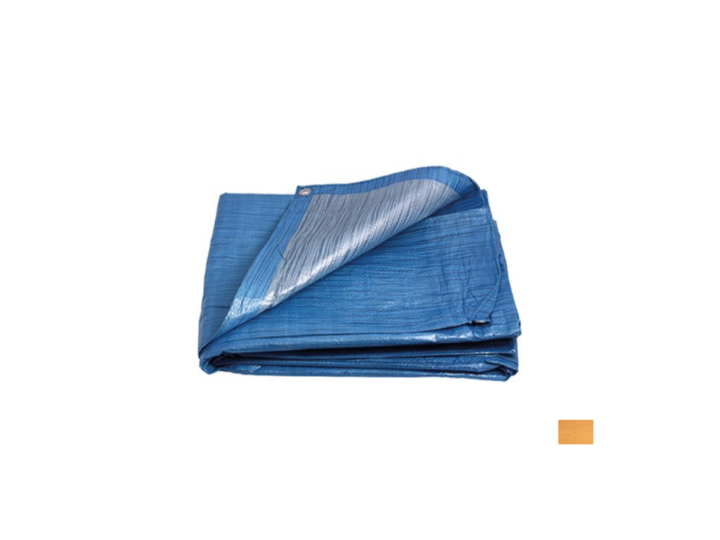 Zakrývací plachta 70g/m2, modro-stříbrná, Materiál: PE vlákna o vysoké hustotě; Oboustranně laminovaná; Vzdálenost mezi oky: 1m; Počet přízí na čtvereční palec: 7x7; Jemnost příze: 600denier; Nerezavějící oka; Ochrana proti UV záření, Nepromokavá, Otěru odolná, Odolná vůči kyselinám, Plísni odolná.