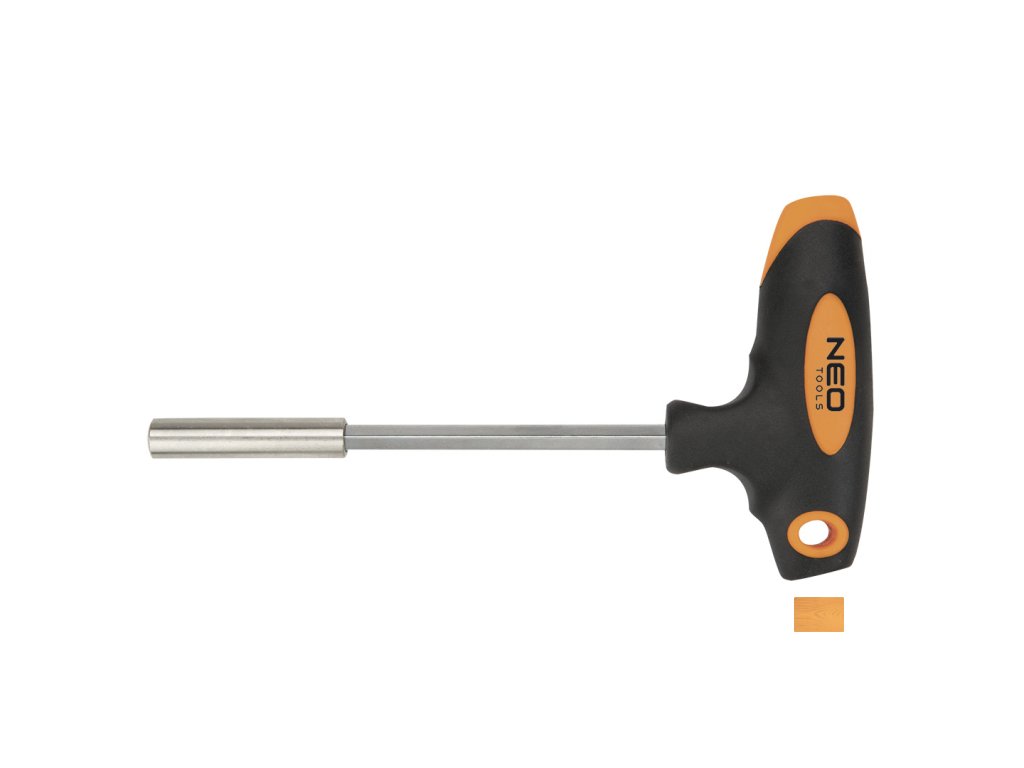 Držák bitů typu T NEO s délkou 175 mm. Vyrobena z odolné chrom-vanadiové oceli. S ergonomicky tvarovanou rukojetí zvyšující komfort při práci. Kvalitu nářadí potvrzuje certifikát TÜV a záruka výrobce na 25 let. Značka NEO splňuje očekávání profesionálů.