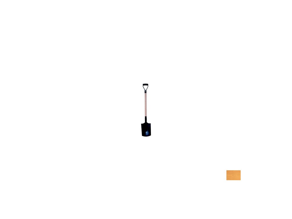 Ocelový rýč hranatý s dřevěnou násadou a plastovou rukojetí.