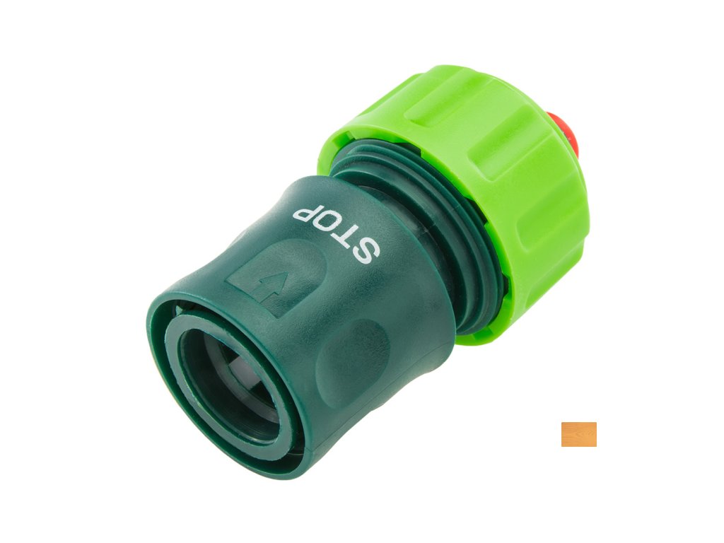 STOP spojka 3/4“ VERTO (ref. č. 15G723). Rychlospojka je zhotovena z vysoce kvalitního plastu, proto bude tento prvek sloužit bezporuchově po dlouhou dobu. Další výhodou rychlospojky je, že má funkci stop, která umožňuje pohodlně zastavit proud vody, bez nutnosti uzavírání jejího přívodu.