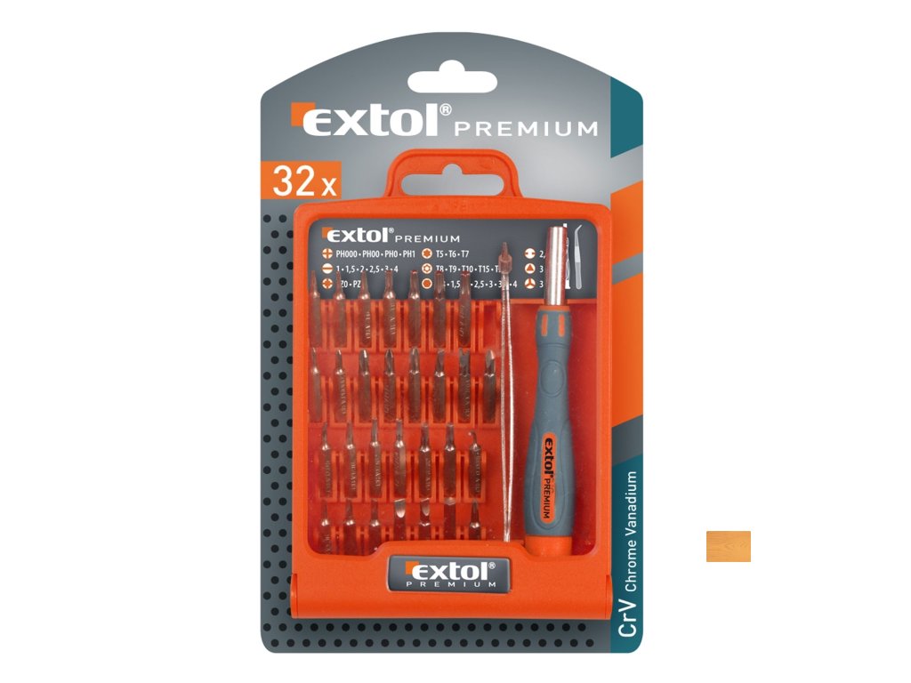 | doplňující parametr: | mini-hroty 5/32": (-) 1-1,5-2-2,5-3-4mm, PH 000-00-0-1, PZ 0-1, HEX 1,3-1,5-2-2,5-3-3,5-4mm, SD 2,6, TW 3, T 5-6-7, TTa 8-9-10-15-20, triangle 3, pinzeta , rukojeť-nástavec na hroty 115mm |