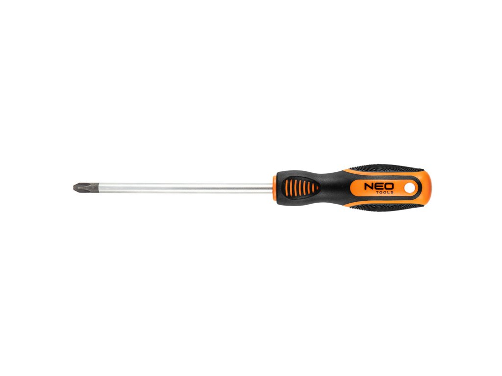 Křížový šroubovák NEO (č. 04-181) užitečný při mechanických pracích a pro kutily. 150 mm dlouhá čepel je vyrobena z odolné chrom-vanadiové oceli, která zajišťuje dlouhou životnost nástroje. Magnetický hrot z kalené oceli PH3 usnadňuje používání nástroje. Ergonomická plastová rukojeť potažená protiskluzovým materiálem zajišťuje bezpečnost a pohodlí při práci. Značka NEO splňuje očekávání profesionálů.