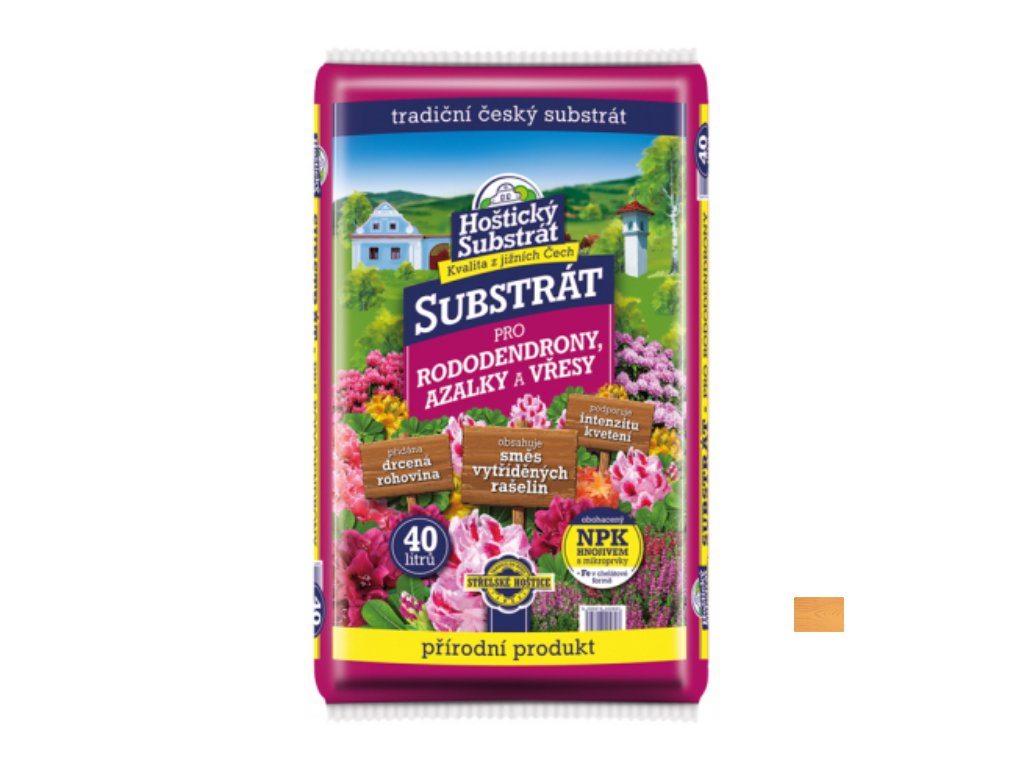 Hoštický substrát je určen pro rododendrony, azalky a vřesy. Je vyroben ze směsi vytříděné světlé a tmavé rašeliny s vhodnou kyselostí. K základnímu vyhnojení substrátu je použito minerální vícesložkového hnojivo s mikroprvky. Substrát je dále obohacen o fosforečné hnojivo a železo v chelátové formě. Svojí strukturou a optimálním poměrem jednotlivých typů rašelin je zajištěna rovnováha mezi vodní a vzdušnou kapacitou substrátu. Zvýšený obsah fosforu podporuje intenzitu kvetení i bohatost a velikost květu. Přídavek drcené rohoviny zajištuje dlouhodobé a pozvolné uvolňování dusíku i dalších živin, které jsou přítomny ve stopovém množství. Balení: 40 l.
