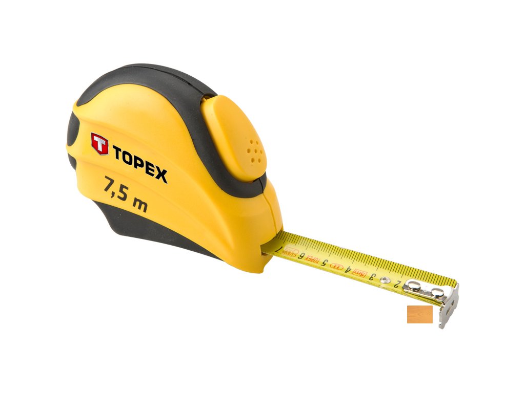 Ocelové svinovací měřící pásmo TOPEX s automatickou blokádou svíjení pásma. Dvojitá vrstva laku chrání potlač proti oděru. Ergonomický tvar rukojeti umožňuje pevné a pohodlné uchopení a protiskluzový materiál zajišťuje komfort a bezpečnost při práci. Značka TOPEX je určena pro domácí kutily.
