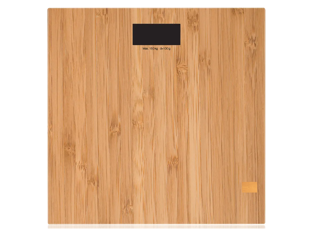 Osobní digitální váha PU-005WN, v dekoru dřeva, s možností vážení v kg a lb.