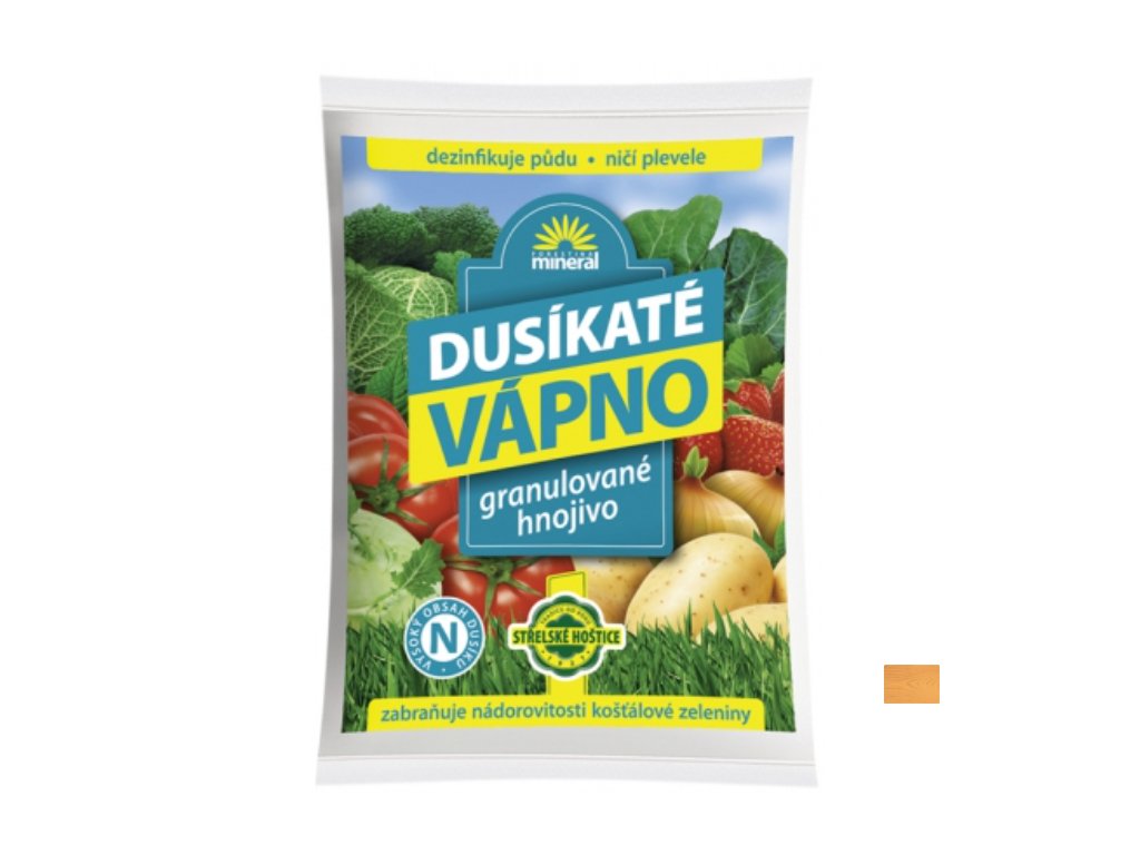 Granulované dusíkaté vápno obohacuje půdu o dusík a vápník. Využívá se k desinfekci půdy zvláště proti houbovým chorobám a tím zabraňuje nádorovitosti košťálovin a brukvovin. Zároveň výrazně ničí i vajíčka slimáků. Hnojivo se aplikuje dva až tři týdny před setím či výsadbou rozhozem na plochu v dávce cca 50 g/m2. Balení: 1 kg.
