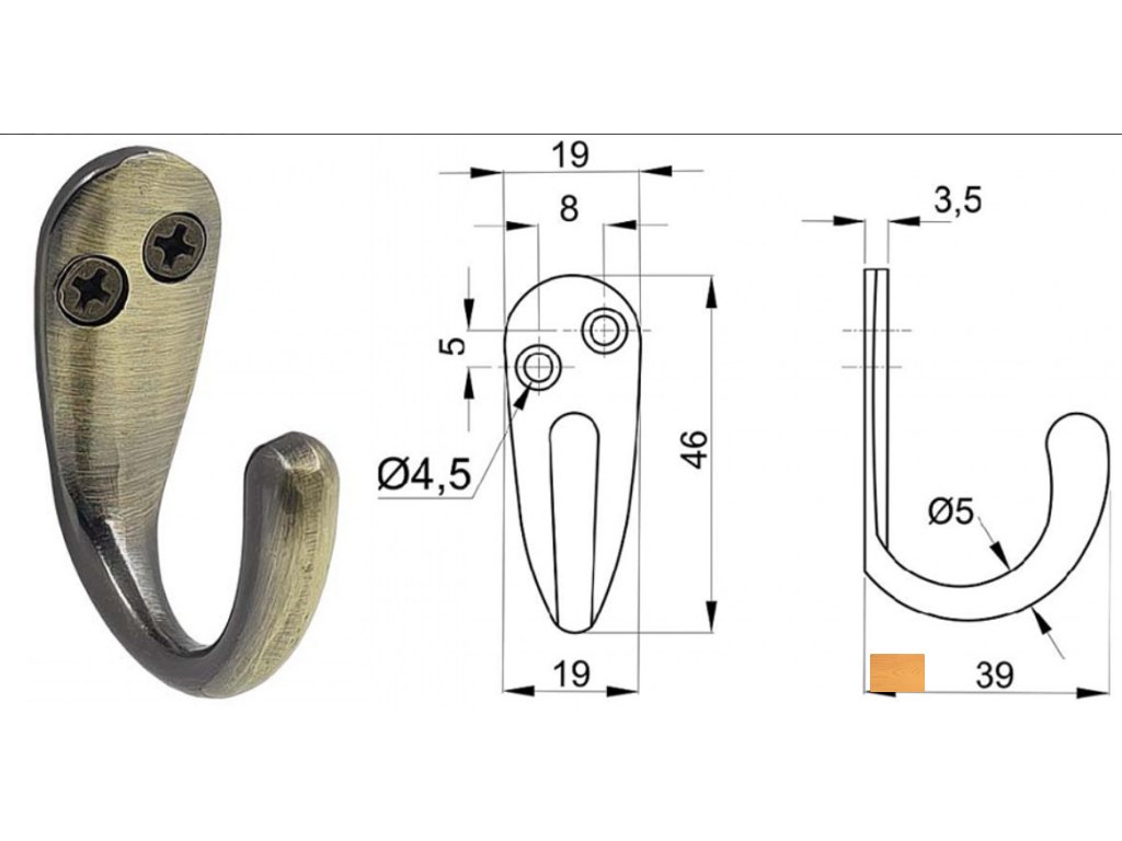 Celokovový šatní jednověšák z galvanicky pokovené či lakované slitiny zinku, k přišroubování na stěnu, dodávaný včetně vrutů.