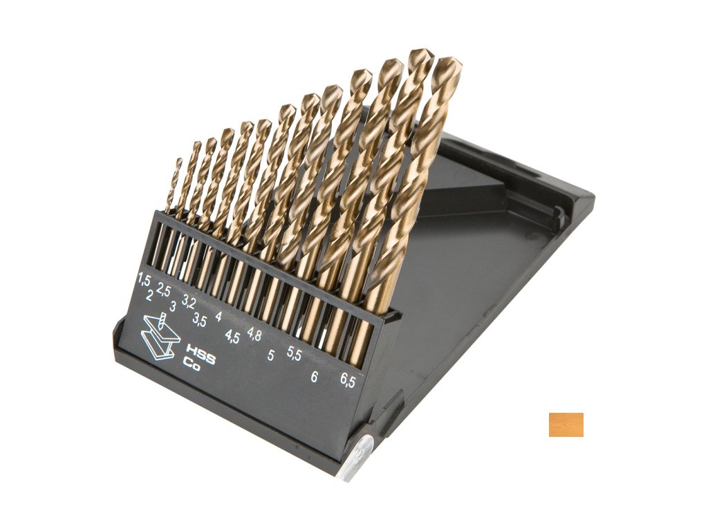Sada vrtáků do kovu GRAPHITE (ref. č. 57H088) o průměrech 1.5 mm do 6.5 mm vyrobena z vysoce kvalitní slitiny rychlořezné oceli M35 s 5% obsahem kobaltu. Vrcholový úhel 135° a vybrušování umožňují snadné navrtání otvorů bez použití důlčíku. Díky odolnosti slitiny při vysoké teplotě jsou ideální pro vrtání otvorů v těžko obráběných materiálech, včetně nerezové, kyselinovzdorné nebo žáruvzdorné oceli.