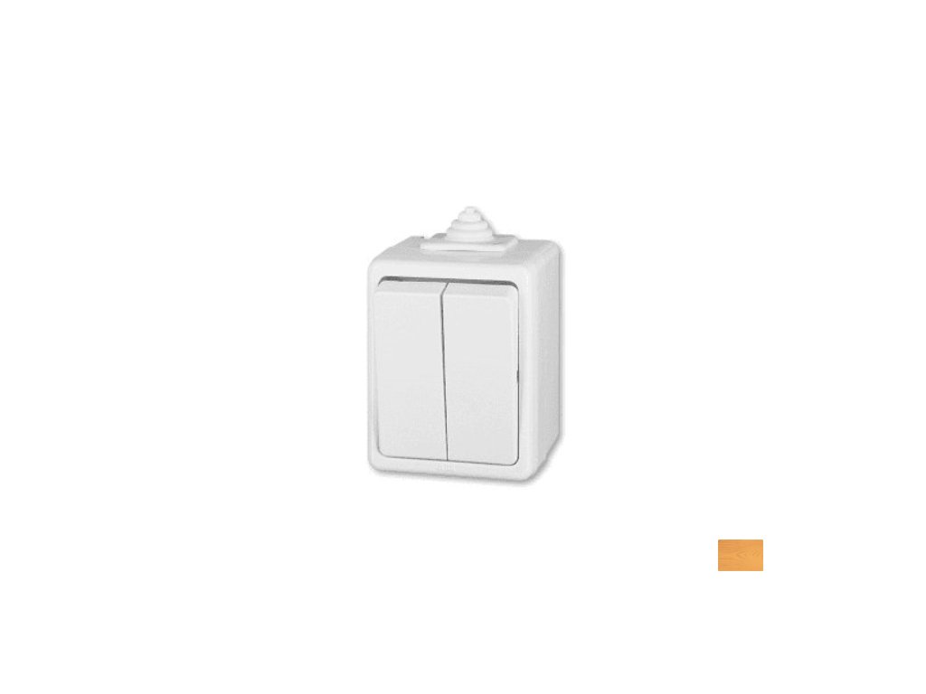 Venkovní vypínač lustrový č.5 ABB PRAKTIK 3553-05929 B bílé barvy s montáží na zeď a krytím IP 44 pro venkovní použití.