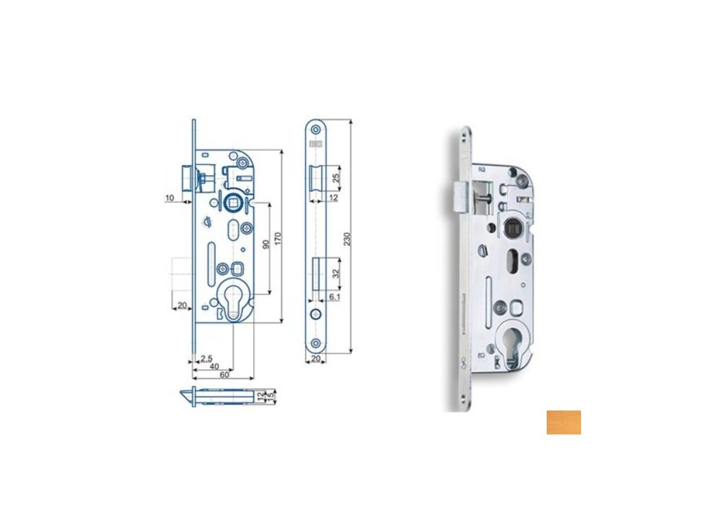 - Dvouzápadový zadlabací zámek HOBES 02-04 s pravo-levý s převodem