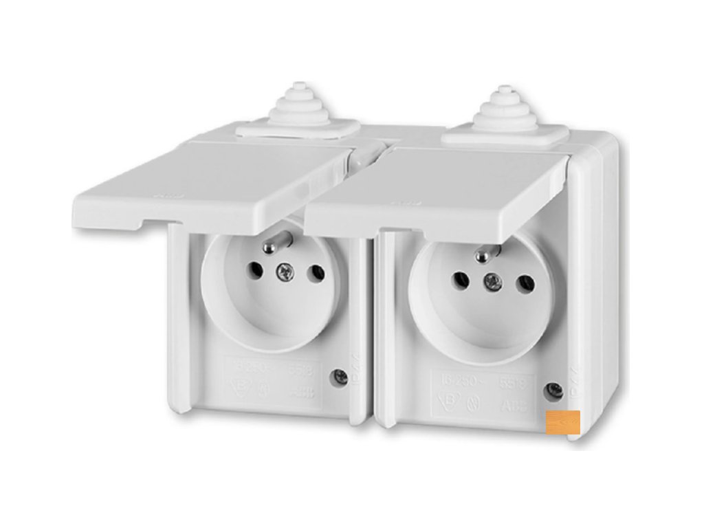 Dvojzásuvka ABB Praktik se zaklapávacím víčkem 5518-2069 B disponuje stupněm krytí IP44 a slouží pro použití v prostředí se ztíženými podmínkami.